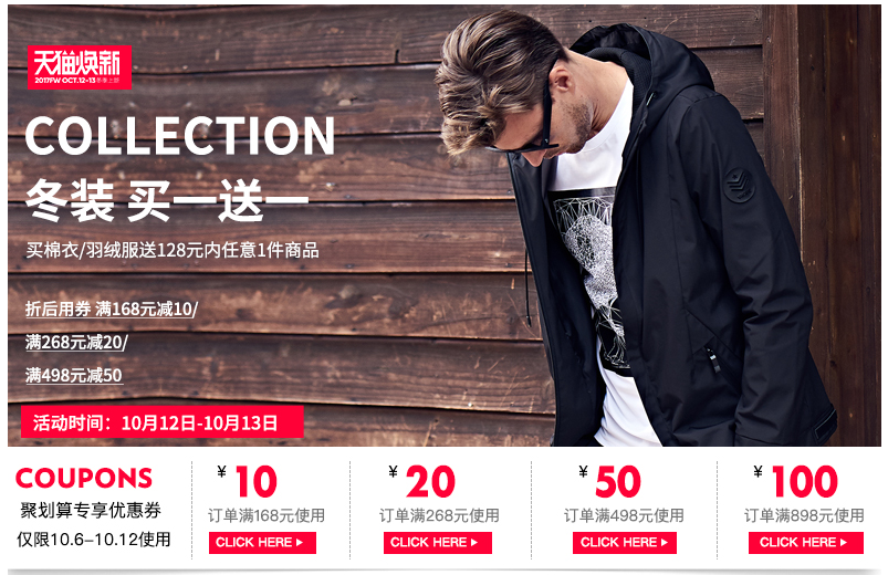详情排版有7大版块,当然不是所有的宝贝详情都要这样去进行排版,大家具体参考自己的实际情况来决定。第一个版块就是首屏海报,首屏海报可以设置店铺营销图片,就像上图中的这样,冬装全场买一送一,然后还有优惠券。也可以把店铺主推款放到这里,所有进店看我们商品的顾客都可以看到。而首屏海报的作用是什么呢?就是针对目前的趋势,把店铺做的营销活动,店铺特有风格都可以在这里有一个展示。有一个叫裂帛的店铺,主要是做民族风的服饰,就非常有自己的个性。大家看一下,他们在首屏海报这里,就把自己的整体格调都展示出来了。